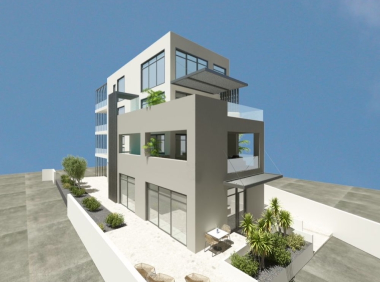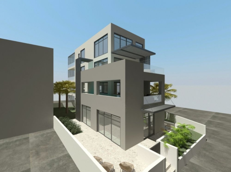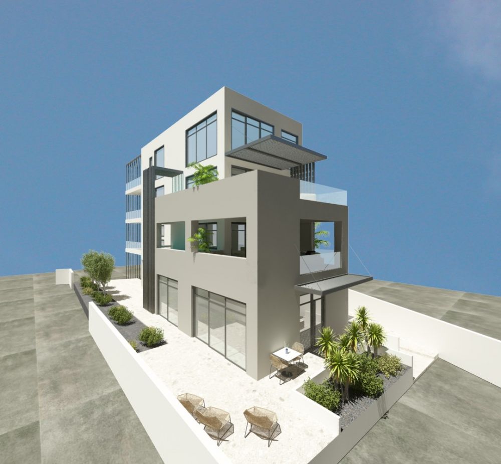 Luxury building for sale consisting of 3 Apartments on a plot of 414 sq.m. in Nea Chora: On the ground floor there is a 90 sqm apartment with 2 bedrooms and 1 bathroom. On the 1st floor is an apartment of 100 square meters with 2 bedrooms, 2 bathrooms, 2 parking spaces and a swimming pool. On the 2nd and 3rd floor is an apartment – maisonette, 200sqm penthouse with 4 bedrooms, 3 bathrooms, 2 parking spaces and a swimming pool. Each apartment will have independent heating with a heat pump and fan coil units. It will have aluminum frames with double glazing and tiled floors. The energy class of the property is A+. Additional features of the apartments include security doors, wardrobes, window screens and a solar water heater. The property is located just 200 m from the sea. In addition, it will have photovoltaic panels that will power part of the building. The construction of the apartment building is progressing normally and is currently being plastered. Nea Chora is a district of Chania located 1 kilometer west of the city center. Particularly known for its well-organized beach with golden sand. It is a developing area that can be reached by following the coastal road west from the Venetian port. Along the coastal road there are many good fish restaurants. Near the beach of Nea Chora are the Naval Club of Chania and the old factory of ABEA, which is the first industrial unit of Crete in the 19th century and today hosts a school. In Nea Chora is the historical Church of Agios Konstantinos, built in 1915.